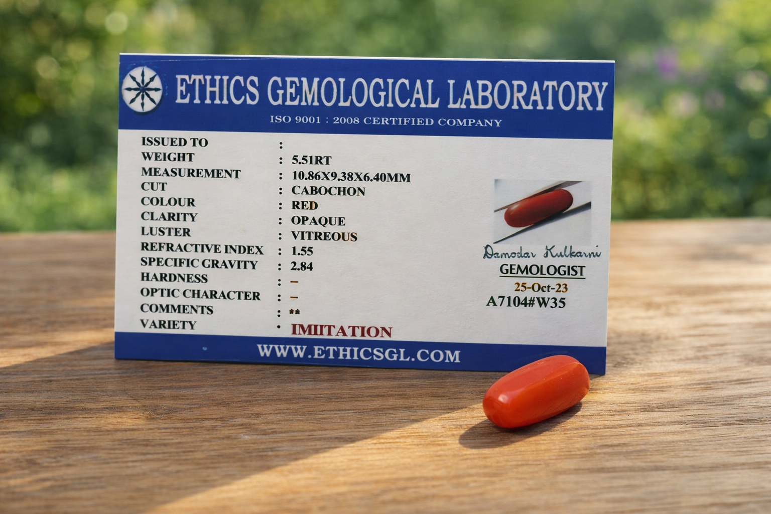 Visual Quality: Tasveer mein nazar aane wala yeh Marjan apne "Capsule Cut" (Cabochon) ki wajah se bohot munfarid (unique) lag raha hai. Iska rang yaksa (even) laal hai aur iski satah (surface) bilkul humwar aur chamakdar hai. Yeh ek organic gemstone hai jo samundar ki gehraiyon mein banta hai.