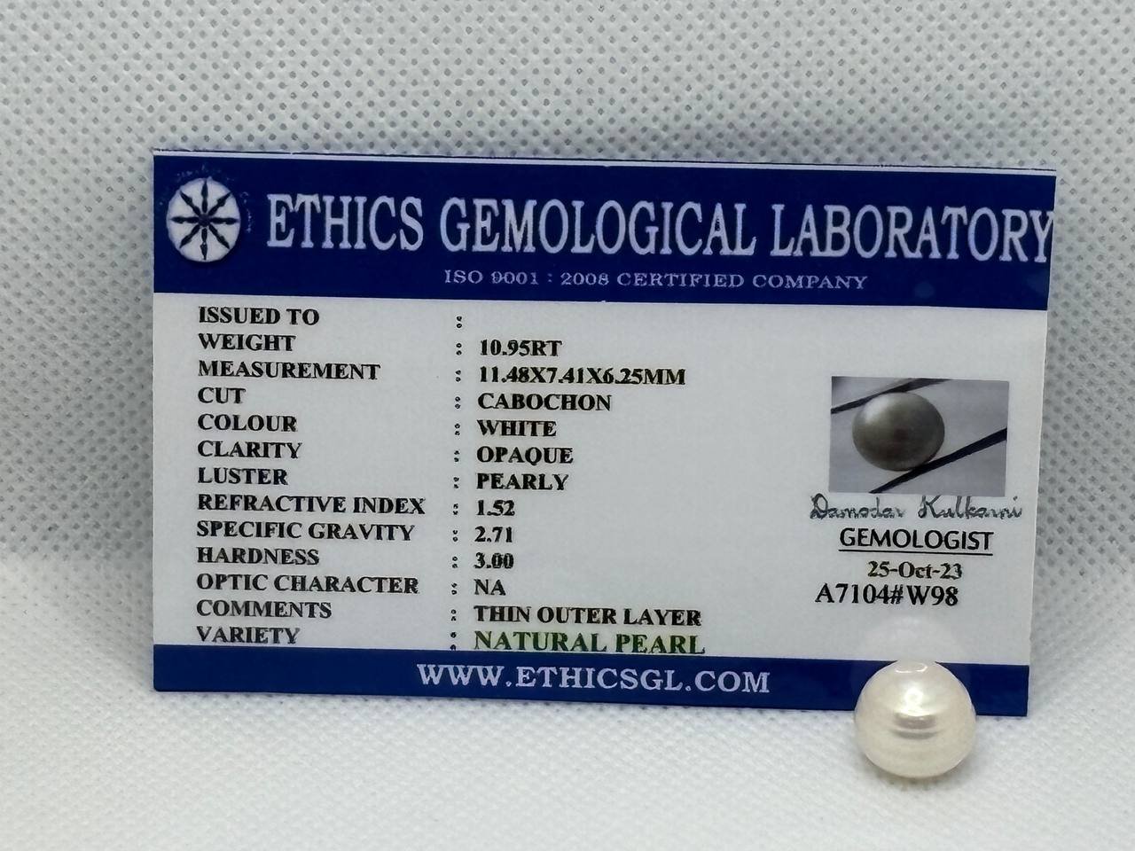 Visual Quality: Ye Moti ek dam gol (round) aur safed rang ka hai jisme ek qudrati chamak hai. Iski satah (surface) chikni hai jo roshni padne par chamakti hai. Ye stone 'Halal Zinat' (Jaiz khubsurati) ka behtareen namuna hai.