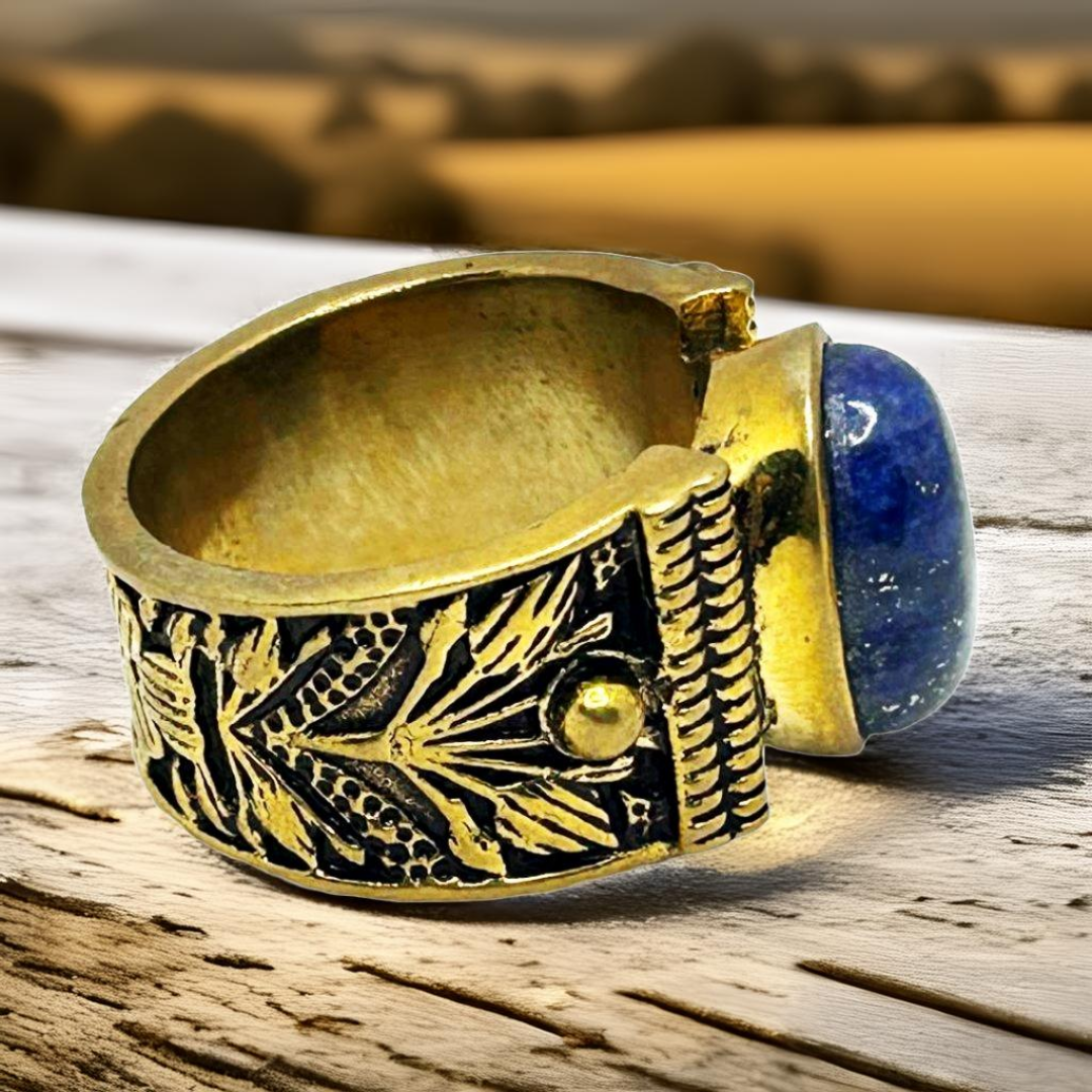 Mardon (Men) ke liye Hidayat: Tasveer mein ye angoothi Sunehri (Gold/Brass finish) dikh rahi hai. Bohot Ahem Note: Islam mein mardon ke liye Sona (Gold) haram hai aur Pital (Brass) makruh hai. Agar koi mard ye pathar pehenna chahta hai, toh wo isay Chandi (Silver) ki angoothi mein jadwa kar pehne. Yehi Sunnah ke qareeb hai.